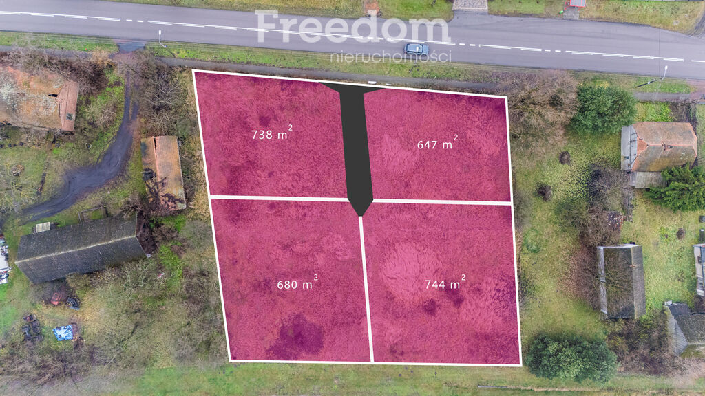 Działka nr 2: 647 m² Działka nr 3: 680 m² Działka nr 4: 744 m²